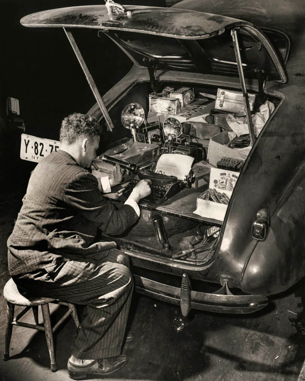 Décadas después, en los años 30 y 40, apareció una figura fascinante: Weegee, quien fue el único reportero gráfico autorizado para usar una radio portátil con la frecuencia policial en Nueva York. Weegee llegaba primero a las escenas, revelaba sus fotos en el maletero de su Chevy 1938 y entregaba con mayor velocidad las imágenes al *Herald Tribune* y al *Daily News* cuando otros apenas estaban en camino.
